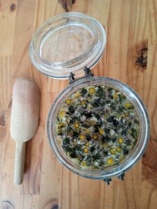 Mon expérience me prouve que l’on peut laisser les fleurs macérer très longtemps et que le mélange se bonifie au fil du temps. Mais pour cela je pense qu’il faut être très rigoureux sur la propreté du contenant, sur le séchage des fleurs (suffisant pour chasser les 3/4 de l’humidité), ne surtout pas fermer hermétiquement le bocal et utiliser une huile riche en vitamine E et stable comme l’huile de tournesol.