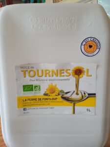 J’utilise une huile de tournesol bio, produite à 10 kms de chez moi, riche en vitamine E, qui pénètre bien la peau.